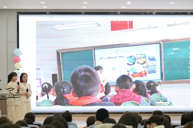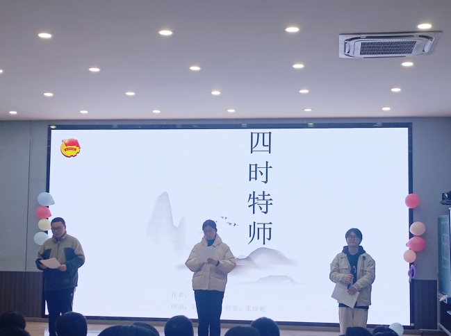 大会伊始,徐琴芳经理讲话介绍参会老师与嘉宾,并致开场辞。接着,由2023级员工殷艺菲和潘翊萱带来了舞蹈串烧,06班的李世豪、朱康妮和朱喜峰则给大家带来了诗朗诵《四时特师》。随后2004 班黄宸宇同学向大家展示了《Keep our city clean》的教学微课,充分展现了自身扎实的师范生功底,为在场员工树立了榜样。