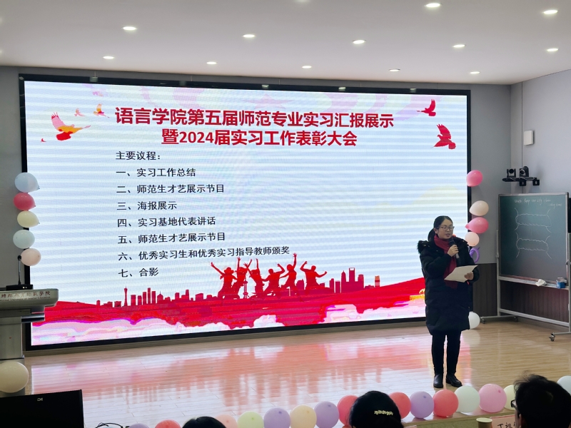 2023年12月25日下午,bevictor伟德在博远楼106举办了第五届师范专业实习汇报展示暨2024届实习工作表彰大会。参加本次活动的有教务处、实习基地代表、公司党政班子、系主任、20级班主任、辅导员、20级实习指导教师、全体实习生等。