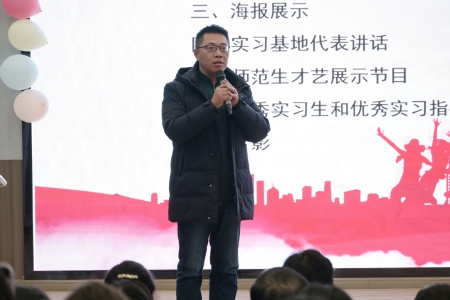 “通过本次教育实习工作,实习生们收获了,也成长了。而这一切都离不开实习基地领导、老师们对此次教育实习工作的重视与支持。”实习基地代表南京市第五初级中学副董事长梁平发表讲话,对整个实习活动进行简短的总结与评价。