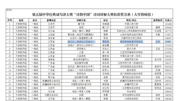 国丽芸老师获得第五届中华经典诵写讲大赛“诗教中国”诗词讲解大赛(大学教师组)