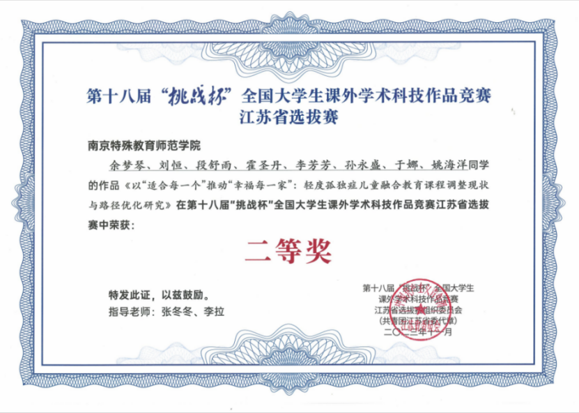 张艺菲等同学获2023年江苏省“鼎傲杯”省赛一等奖等