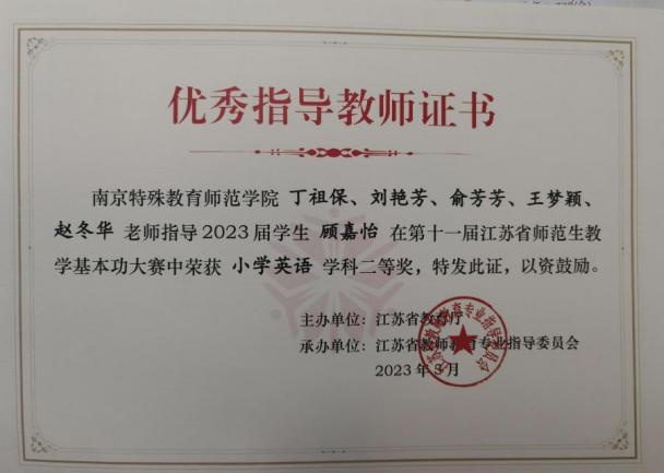 丁祖保、刘艳芳、俞芳芳、王梦颖、赵冬华等获第十一届江苏省师范生教学基本功大赛