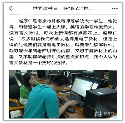 大学英语融合教育团体为视障老员工音乐公司赵厚仁同学进行个性化定制和个别化英语教育