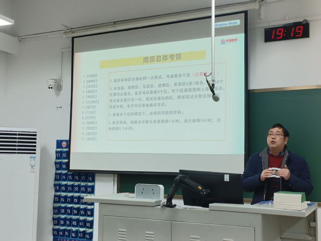 最后,毛伏进老师从三个方面阐述当前江苏省总体考情,阐述了江苏省各市的校招和社招流程及区别,提供了一些参加校招的方法,介绍并对比了江苏各市教编考情,提醒同学们要根据自身情况选择合适的报考点。他还从公共知识和学科知识两方面来介绍教编考试内容和江苏教编考试面试形式,使在场同学对考编有了更加深刻的认识。讲座结束时,老师给现场同学们进行抽奖送书及免费赠送考编资料。