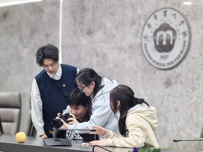 一行人首先参观了南京市盲人公司的校舍、浏览了校史及残疾人教育相关的陈列。员工第一、第二党支部的师生代表对几位正处于高二学习阶段的视障员工进行了学习进度的细致调查。随后,对各位盲生在日常生活中的阅读喜好与习惯进行了访谈。接受调查的员工阅读兴趣广泛且多元,对科普类、中国历史类、哲学类书籍以及各类诗歌也都有涉猎。在阅读方式上,他们多采取纸质书和有声书相结合的方式。最后,询问了视障员工在阅读过程中遇到的困难与需求。
