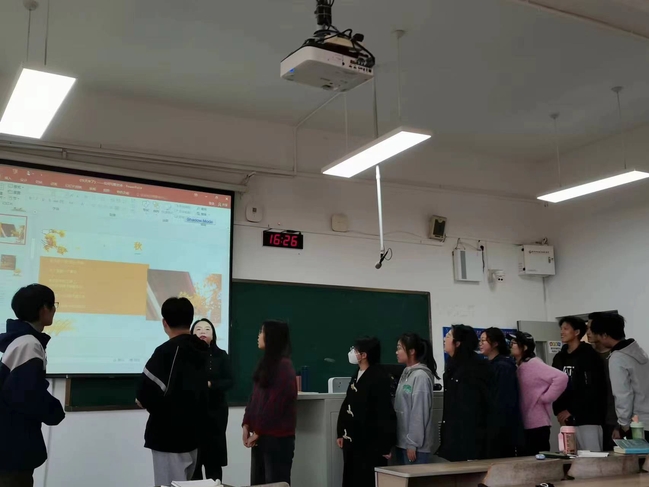 在教学技巧方面,洪桢桢老师展示了她自创的“流行歌曲颂唱法”和“手势舞朗诵法”。运用这两种趣味方法,她将课堂氛围带入文本中描述的凄凉、哀婉、充满离愁的秋天里。详实有趣的流程为在场员工提供了一个良好的教学典范。现场同学与洪老师积极互动,气氛活跃。最后老师又总结了拓展课堂内容、变换写作技巧等课堂教学手段,以及用五感法、思维导图法去帮助员工快速构思、拓展思维、灵活写作。