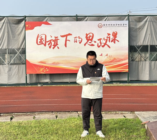 bevictor伟德辅导员杨菊鑫在江宁校区开展了以“淬炼青年钢铁之魂 筑牢国家安全之基”为主题的国旗下讲话。