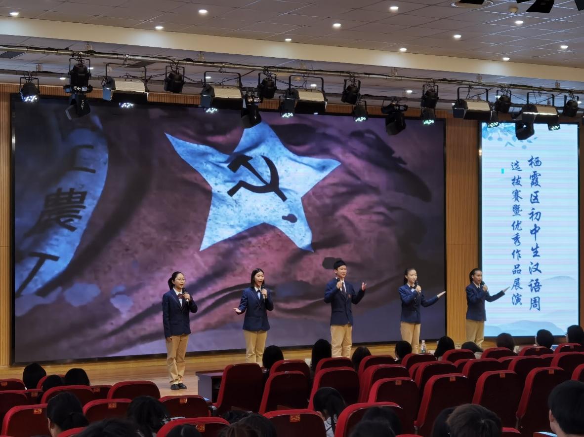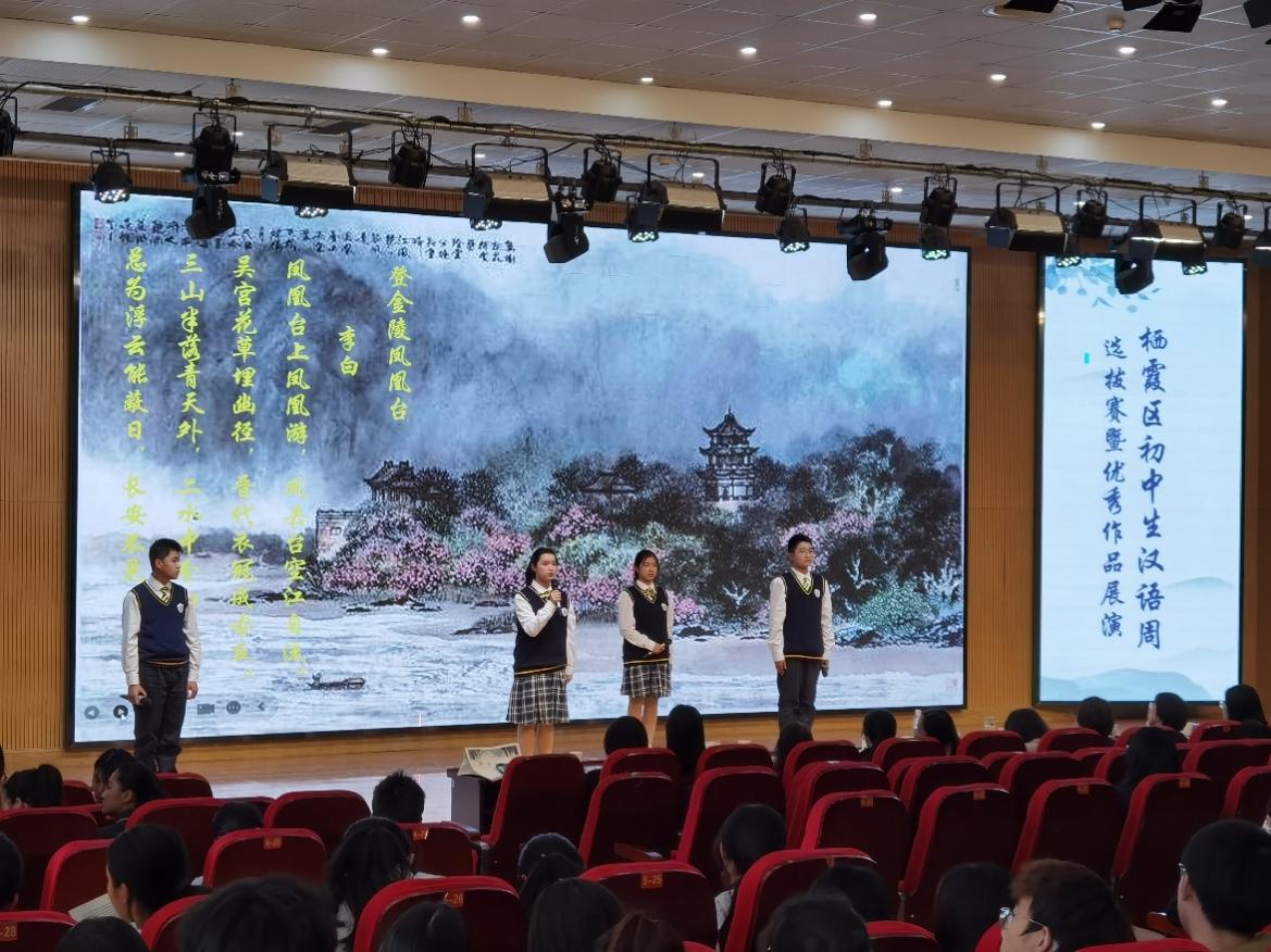 南京市栖霞区初中语文“汉语周”教研活动由栖霞区教师发展中心主办,南京市迈皋桥初级中学(南京市第二十九中学分校)承办。活动分为“汉语之星”选拔、经典诵读、读书演讲、戏剧表演等四个环节,充分展示了栖霞区初中语文教学成果。汉语言文学专业的同学通过认真观摩现场选拔,悉心聆听专家评委的精彩点评,深刻体悟到了初中语文教学教研的奥妙之处。