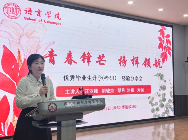 汪亚纯同学为同学们仔细分析了学硕与专硕的区别,并分享了自己的信息来源和备考时间安排。她提到,选择院校时要衡量自身水平,通过研招网、院校官网、微博、知乎等平台及时查看公司招生名额、专业学科难度及其他特殊条件。同时,她还针对英语、政治以及专业课的复习提出了详细缜密且有规划的学习方法,推荐了众多参考书籍、网课、学习APP等,建议同学们多刷真题,多背单词,同时也要不断给自己心理暗示,勇敢面对,一直坚持下去。