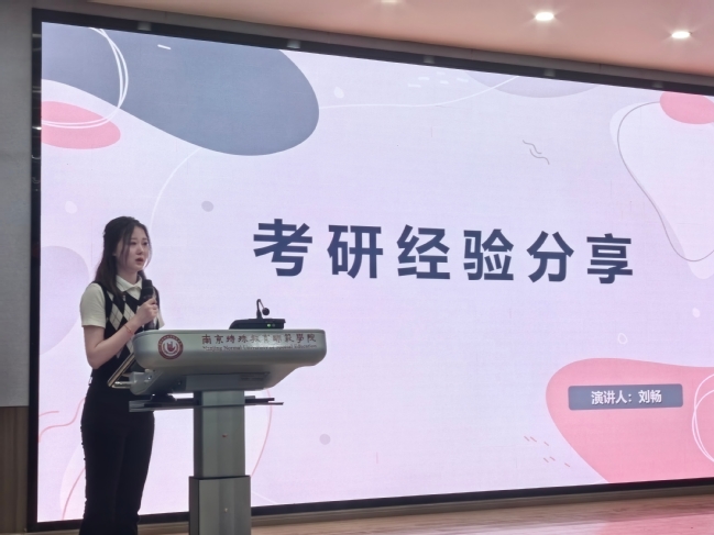 刘畅同学为同学们分享了研招网、院校官网、小红书、微博超话等查询院校的多种渠道,建议考研员工在选择院校与专业时要注意查清专业课书目、统招人数、报录比、复录比以及是否歧视、压分等情况。她以自身考研经历为主线,详细解读了政治、英语和教育综合的备考策略,深入剖析了各科的重难点、复习节奏和技巧,并推荐了一系列的优质复习资源,让同学们对考研规划有了更清晰的认识。
