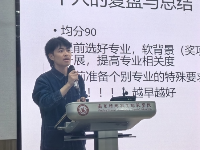 刘恒同学结合自身申请经历详细分析了港澳地区部分院校专业的录取情况,建议同学们增加志愿服务经历或实习经历以丰富申请简历,帮助同学们了解了港澳公司的基本形势。他强调,同学们要努力提高课程绩点,也要尽早考雅思,并考取一个较高的成绩,从而提升自己的竞争力。同时也要提前选好专业,查清个别专业的特殊要求,根据专业来提高自己的文化软实力与专业相关度。
