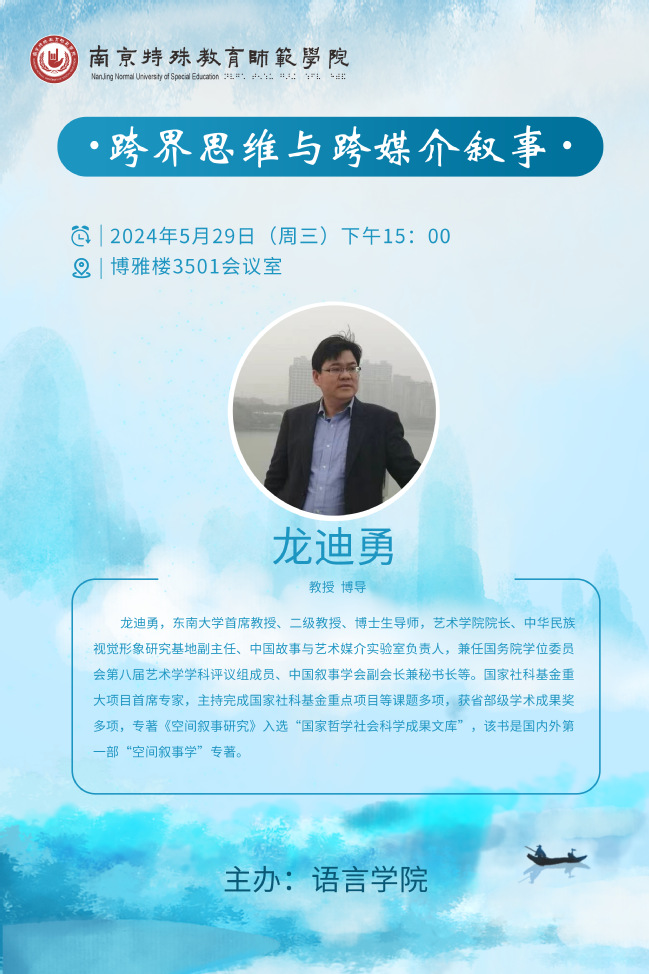 【学术预告】5月29日 龙迪勇 《跨界思维与跨媒介叙事》