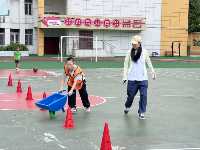 本次趣味运动会项目由志愿者们自行设计组织,由商洛特殊教育公司辅助提供小球、小推车、敏捷圈等道具,“宁商携手 以爱融爱”夏令营全体营员参加。
