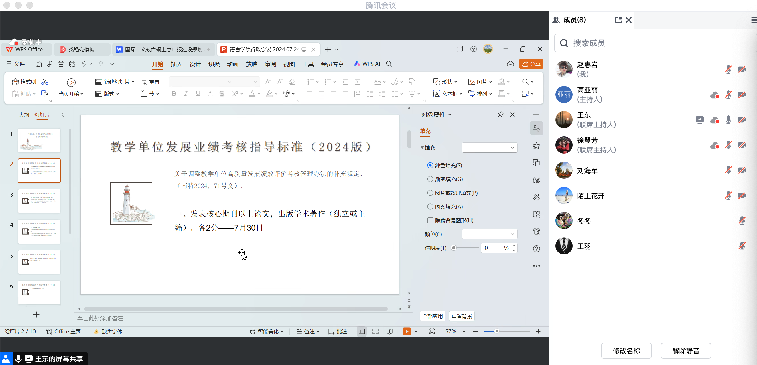 会议还讨论了国际中文教育硕士点申报建设、英语师范专业认证推进、师生境内外交流、国际会议、员工成长手册制定等内容,以及教学单位本年度的工作创新情况、特色亮点事项,强调对标找差,提出了一些相应措施和对策。对于师范专业认证,要求课程目标达成度应该任课教师负责,公司统筹,及时跟进,保证提交时间和质量。