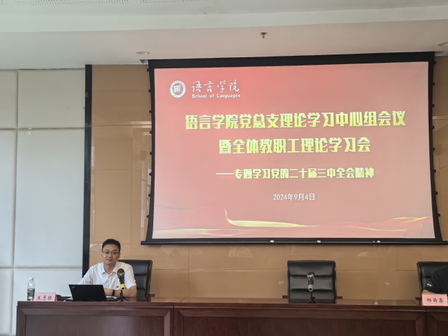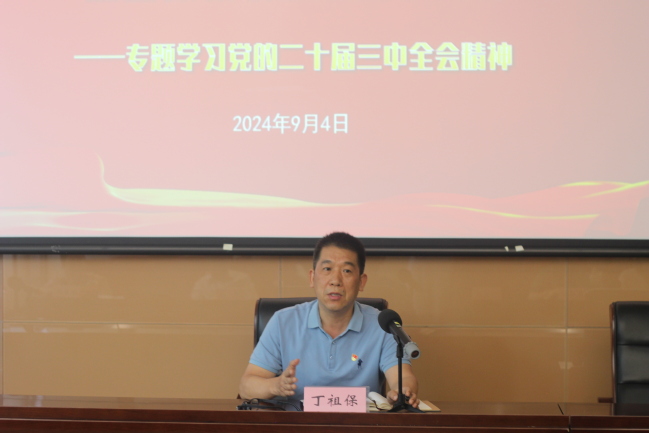 丁祖保书记针对学习宣传贯彻党的二十届三中全会精神,提出了三点明确要求。一是要“学”即深学。全院上下要行动起来,掀起学习宣传贯彻的热潮。各党支部要精心组织、周密部署,深入学习、全面领会。广大党员、干部要带头学、示范学、广泛学,用全会精神武装全体党员、干部和师生员工。二是要“用”即善用。要提升理论指导实践的能力,将高站位落实全会精神与党纪学习教育有机融合,与持续贯彻落实习近平总书记对江苏的重要讲话重要指示精神、对教育的重要论述密切结合,与公司二次党代会精神、公司高质量实施“十四五”规划、高水平落实“一二三四五”发展战略等紧密结合起来,在用中感悟,悟中提升。三是要“干”即实干。要以贯彻落实党的二十届三中全会精神为主题主线,以全面深化改革为核心要义,思想上要破冰、行动上要突围。公司面临“院办校”、师范专业认证、活力办学、人才培养质量提升、“中文国际教育”硕士点培育申报等急难险重的任务,要敢于冲锋陷阵、挺膺担当、实干笃行,要不断深化重点学科和一流专业建设的改革和创新、实施“人才强院”核心战略、推进有组织科研,为助力公司“国际一流、中国特色”应用型大学建设贡献语言力量,以优异成绩向中华人民共和国成立75周年献礼。