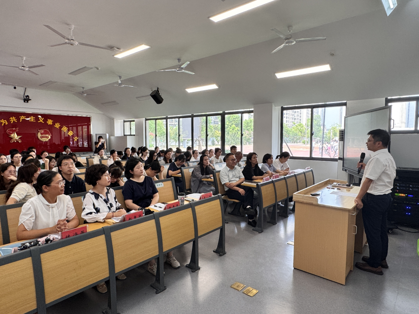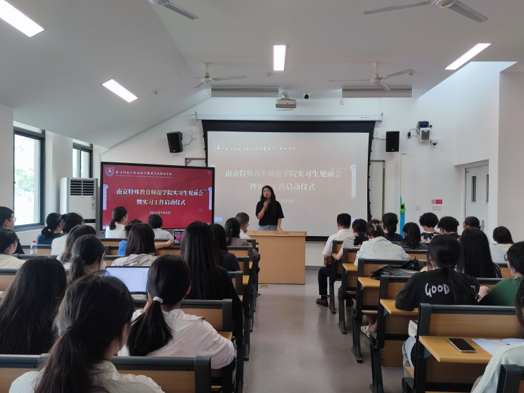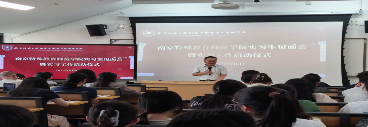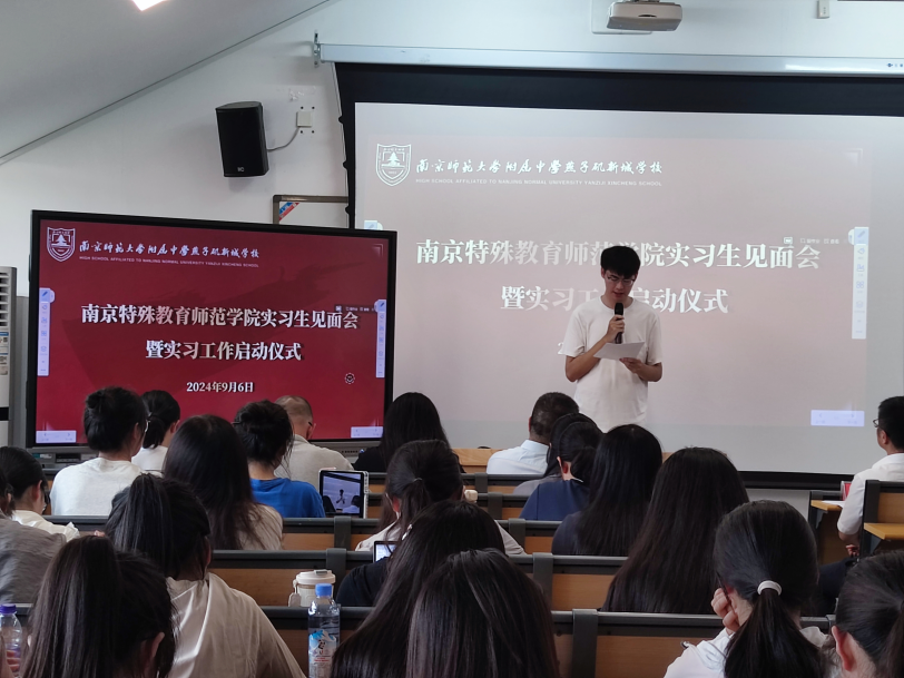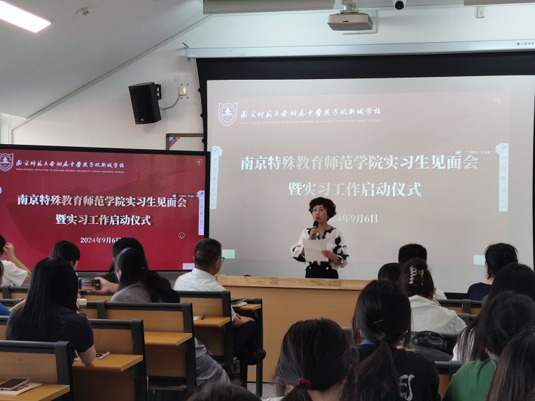 南师附中燕子矶新城公司初中部各实习学科的指导教师代表进行了发言,希望实习生们能够勤勉务实,不虚此行,学有所获。总务主任翁咏翔也介绍了实习期间的后勤保障及纪律要求,提醒实习生们注意实习安全,对于实习期间的工作场所及用餐等作出了详尽安排。