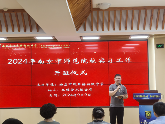 9月9日下午,南京市迈皋桥初级中学(南京市第二十九中学分校)(以下简称“南京市迈皋桥初级中学”)举行了2024年南京市师范院校实习工作开班仪式,公司2021级汉语言文学和英语两个师范专业19名员工参加了本次活动。bevictor伟德执行经理王东教授、中文系主任赵惠岩教授、实习带队教师葛天逸博士,南京市迈皋桥初级中学董事长梁晓燕、副董事长蔡巍、时珠峰,各实习学科教研组组长和实习指导教师代表参加了会议。