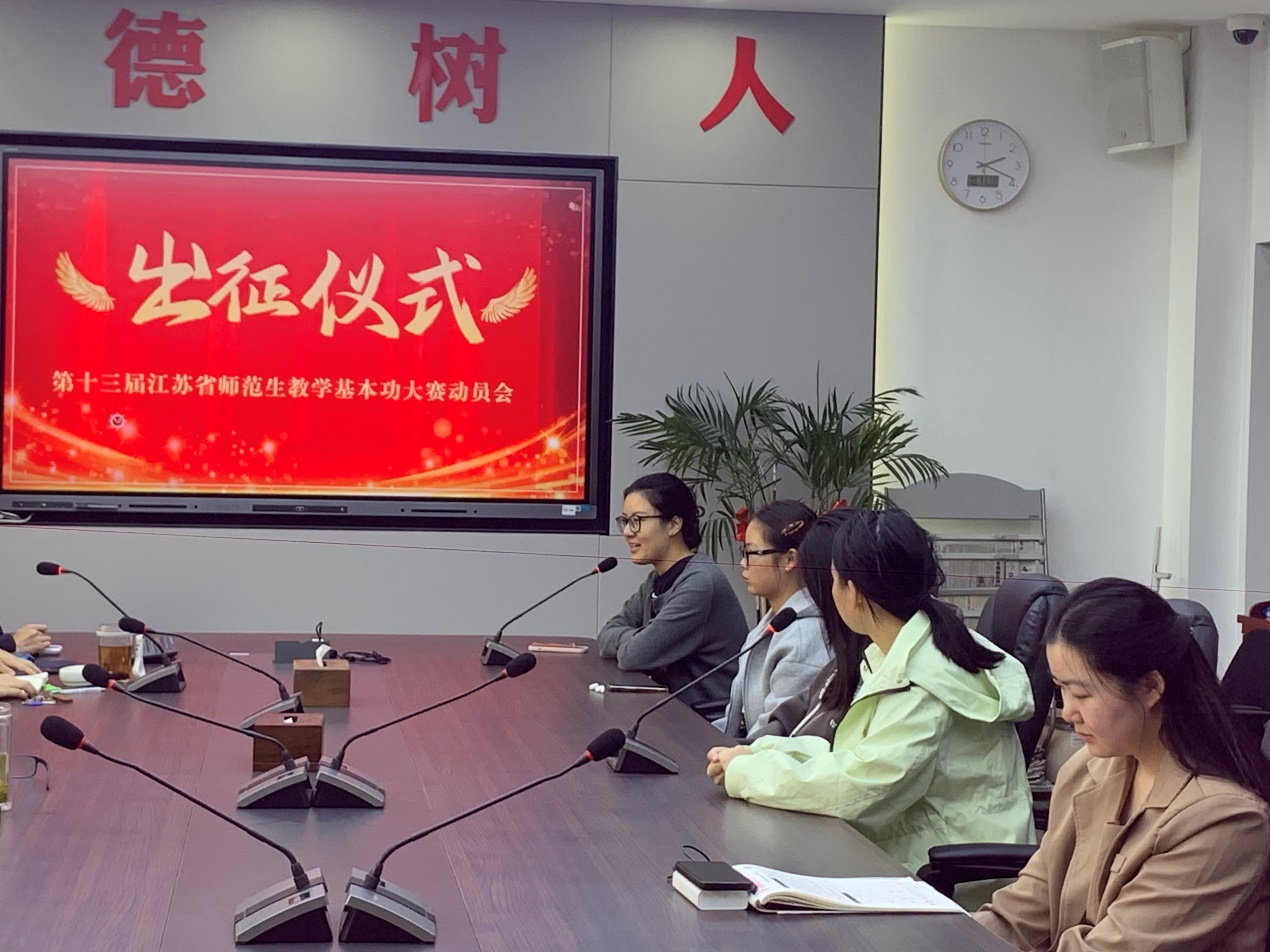 为了提高师范生基本技能和预热“第十三届江苏省师范生教学基本功大赛”,为即将进行的省赛做好准备,公司举办了动员大会,公司领导、比赛领队、教师代表和参赛选手出席本次会议。