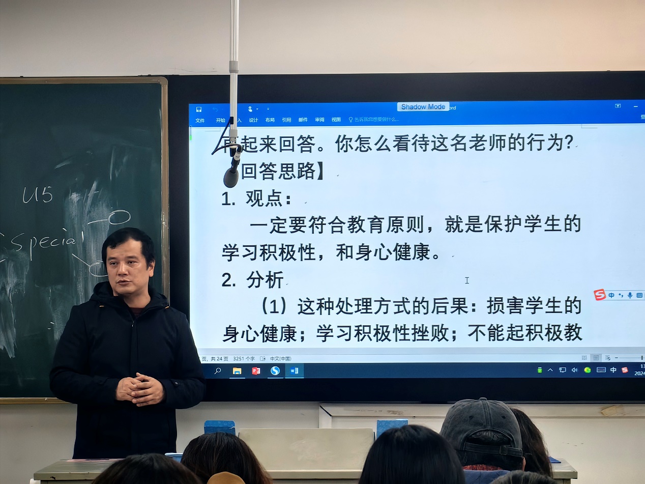 教学流程要有导入、新授、练习、总结和作业布置等环节。在教学实施方面,注重教态、语言表达、教学方法的运用以及课堂互动。比如教态要自然大方,语言表达要准确流畅,教学方法要多样化且符合英语学科特点,要能有效引导模拟员工参与课堂互动。最后,徐老师解释了答辩环节的答题思路以及注意点。