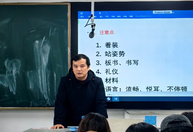 讲座伊始,徐宁老师从着装、站姿、板书、礼仪、材料、语言以及书写等方面详细阐述了教资面试的注意点。良好的教态是吸引考官和模拟员工的重要因素。建议同学们在面试时保持微笑,眼神自信地与考官和模拟员工交流,肢体动作自然且适度。在语言表达上,要注意语音语调的准确性和生动性,使用标准的英语发音,语调要有起伏,以增强语言的感染力。