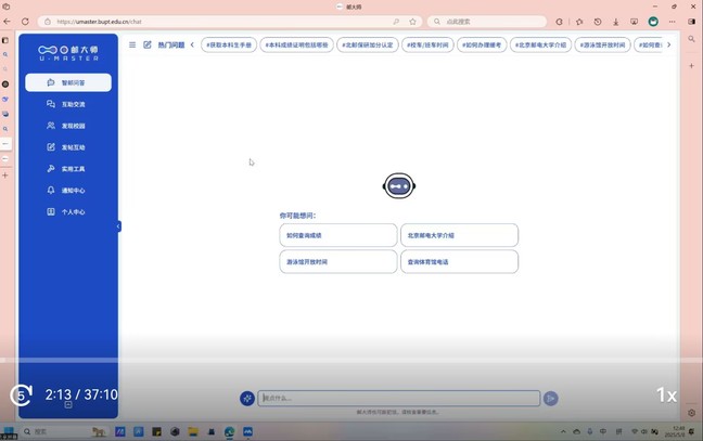 会上,钟奕涵介绍了北京邮电大学师生自主研发的“邮大师”平台,通过“场景还原+功能演示”,生动呈现平台的核心模块,针对“个性化模型+信息化溯源”,多维展现平台的独特亮点,并就“邮大师”作为大模型赋能的个性化社交系统,在哪些事情上帮助辅导员“减负”进行了详细讲解。随后,师生进行了互动交流。