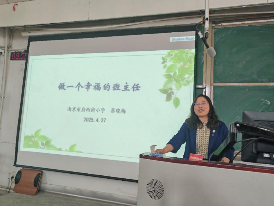 随后,蔡晓梅老师带来了题为《做一个幸福的班主任》的精彩讲座。蔡老师有着31年的班主任工作经验,她从专业定位、幸福解读、找寻幸福密码和搭建幸福框架四个维度,分享了自己在班主任工作中的心得与感悟。蔡老师指出,班主任既是知识的传授者,也是班级的管理者、员工成长的引路人,肩负着多重重要角色。她分享了自己对幸福的独特理解,认为员工的成长进步、师生关系的融洽、同事的支持以及自身专业的提升等,都是幸福的源泉。蔡老师通过讲述员工的故事,展现了科学员工观的重要性,强调要以发展的眼光看待员工。在班级管理方面,蔡老师介绍了诸多实用方法,如建立公平公正公开的班级规则、组织多样化的亲子实践活动等,还分享了处理员工问题和与家长沟通的技巧。她鼓励同学们不断学习和反思,提升专业素养,保持积极乐观的心态,在班主任工作中收获幸福。