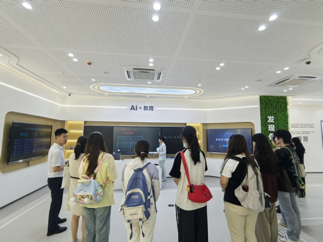 在负责人的带领下,师生前往人工智能体验馆,同学们近距离体验了讯飞星火认知大模型、智能语音翻译系统、AI虚拟人等前沿技术成果,深入了解人工智能在语言服务领域的创新应用。