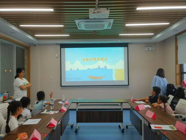主讲人先为同学们讲述《让我们荡起双桨》的创作背景——那是新中国成立初期,孩子们对和平生活的赞美与对未来的憧憬。随着悠扬的旋律响起,大家跟着音频轻声学唱,随着同学们的歌声在屋内缓缓响起,那份跨越时代的温暖与力量似乎也萦绕在我们心间,久久不散。
