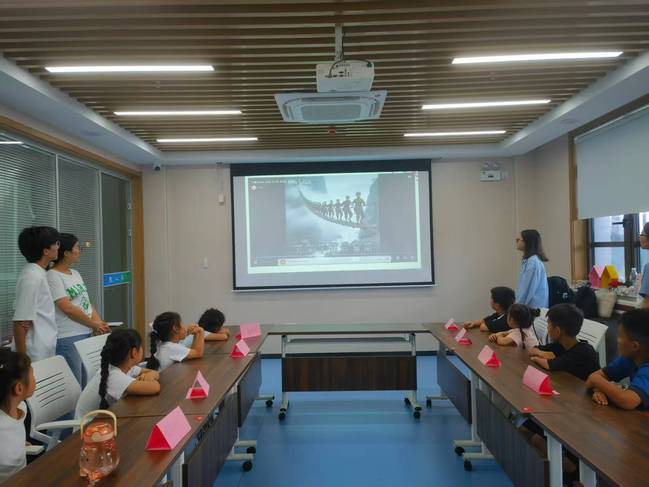 主讲人先带领同学们通读了几遍,为同学讲解部分生词。随后为同学们播放了一段小影片,展现了万里长征路的艰难险阻,帮助同学们更好地理解诗词内容。讲解完成后,主讲人带领同学们根据诗词内容画出其想象中的长征画面。在绘画环节中,主讲人顺势引出了长征的历史背景与其诗词中的象征意义,让同学们更好地理解了“不怕牺牲、百折不挠”的长征精神。