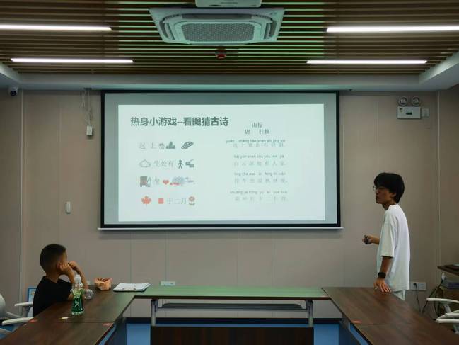 活动以看图猜古诗热身游戏拉开序幕。主讲人通过生动有趣的图片引导,孩子们兴致勃勃地参与其中。老师,我知道!这是《悯农》!小朋友们争先恐后地举手抢答,现场气氛热烈。在轻松愉快的氛围中,孩子们通过图片联想,先后学习了《梅花》《明日歌》《清明》等经典诗词。这个互动环节不仅充分调动了孩子们的积极性,更以寓教于乐的方式为后续的诗词学习做好了铺垫。