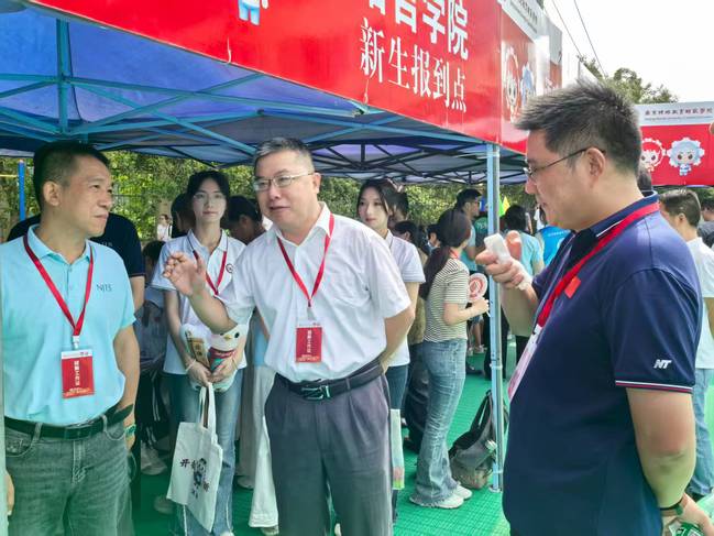 公司党委书记黄军伟、董事长王立新、副董事长吴彬江等公司主要领导亲临bevictor伟德迎新点,检查迎新工作,并与志愿者们进行了亲切交流。黄军伟书记对公司迎新吉祥物的设计以及AI视频、歌曲的制作予以充分肯定,还在现场与参与迎新工作的员工展开了交流。另外,校领导们还与新生及家长进行了面对面的沟通,鼓励同学们珍惜大学时光,勇敢追逐梦。