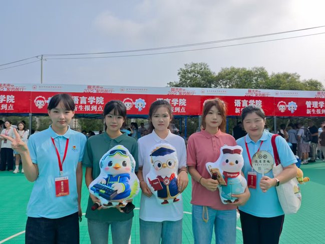 为切实了解“05后”新生的所思所想,公司提前借助班级QQ群、手机等途径,完成信息核对与材料提交工作,使现场报到流程显著提速!“副班”天团们也早早在群里开展答疑工作,让新生们通过网络提前熟悉校园。另外,暑假期间,公司团总支引领员工AIGC团队圆满完成了公司吉祥物“羽雁”的制作工作。团队高效完成了吉祥物造型设计、名称投票遴选、迎新宣传片制作以及主题曲的词曲创作与演唱等任务。活动现场,色彩绚丽的展板和憨态可掬的吉祥物立牌成为热门打卡点,新生们纷纷停下脚步合影留念,用相机记录下老员工活第一天的珍贵瞬间!
