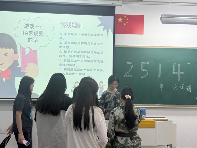 系列团辅活动中,各班级结合专业特色与员工需求,设计了多元化的互动环节。通过“积分制故事接龙”激发团队协作,要求组内成员接力创作完整故事,在“听、说、合”中提升默契,“方言传声筒”游戏让新生感受语言魅力,不同地域的方言传递引发阵阵欢笑,地域距离在趣味互动中悄然消融,以“飞花令”诗词接龙开启心灵对话,新生们在“月”“梦”“青春”等关键词的引领下,用诗词表达情感,在古典文化的浸润中找到志同道合的伙伴。
