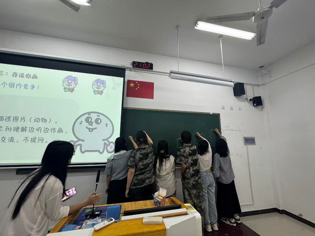 活动伊始,各班级通过“自我介绍+趣味游戏”的组合形式迅速打破隔阂。新生们通过“猜歌名”“你画我猜”等经典游戏,在欢声笑语中熟悉彼此,以“辣度分组”创意破冰,根据吃辣能力划分小组,围绕“饮食习惯”“兴趣爱好”等话题展开交流,让新生在轻松氛围中找到共同点,以“自我介绍+成语互动”为核心,融入“前因后果”“一拍即合”等语言特色游戏,既展现专业趣味性,又拉近心理距离。