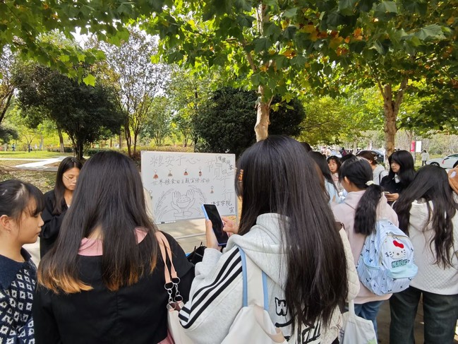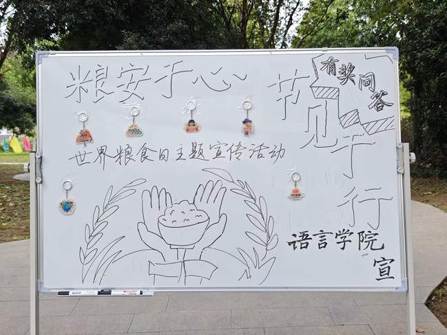 次日,室外实践环节以“粮安于心,节见于行”为主题的有奖问答宣传活动在D栋教学楼小花园火热开展,将活动氛围推向高潮。工作人员结合宣讲内容设计涵盖粮食知识、节粮小技巧等多方面的趣味问答题目,在场人员积极互动,现场掌声与欢呼声此起彼伏。答对者获赠节约粮食主题钥匙扣等小礼品,在趣味互动中将“珍惜每一粒粮食”的理念从理论转化为实践,让节粮行动看得见、摸得着。