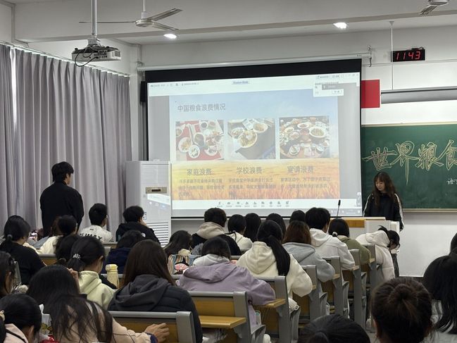 活动首日,室内宣讲环节在D311教室拉开帷幕。2025级各班员工积极参与,员工会成员习艺担任主持,以“世界粮食日”主题教育活动为载体,围绕其起源意义、粮食重要性及我国节约粮食行动展开讲解,以生动的图文、详实的数据为100余名员工打造了一堂沉浸式“粮食节约课”。随后的小组讨论环节更是点燃全场热情,同学们结合自身见闻踊跃发言,既让大家直观了解世界粮食供需的严峻形势,又深刻体会“一米一粟来之不易”的现实意义,进一步强化“节约光荣、浪费可耻”的价值导向。