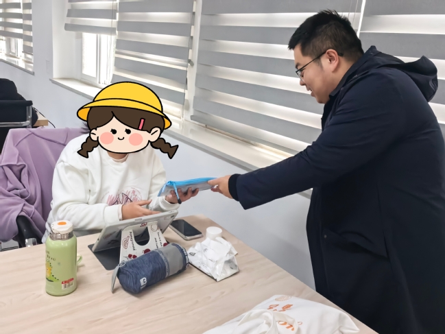 公司精心准备了“考研加油包”,内含考试文具套装、提神能量食品、保暖用品及祝福卡片,每一份礼包都承载着公司对考研学子细致入微的关怀与“一战成硕”的美好祝愿。辅导员杨菊鑫在发放物资时叮嘱备考员工要劳逸结合,保持平和心态,以最佳状态迎接考试。