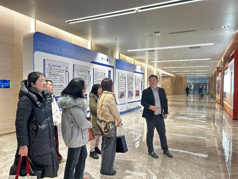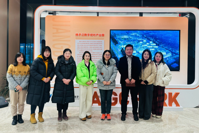 南京江北新区扬子江数字视听产业园由江苏省广播电视局,南京江北新区管委会等六家单位联合共建,是江苏布局网络视听高质量发展的标杆园区。园区自2024年9月开园以来,仅一年时间便快速集聚56家短剧上下游企业,签约100余个专业拍摄场景,年出品短剧超400部、总产值破3.5亿元。目前全省短剧备案审批中心、欧美出口中心也相继在此落地,形成“剧本孵化—摄制—后期—审核—出海”全产业链闭环,是中国文化出海的重要阵地。调研过程中,教师们走访了部分入驻企业,对数字视听产业在内容制作流程、技术应用场景以及产业协同模式形成较为直观的认识。