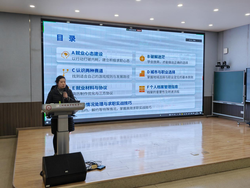 杨菊鑫老师则以细致入微的态度,为毕业生们精心梳理了未来几个月的关键时间节点与对应事项。无论是考研备考的关键冲刺阶段、求职应聘的黄金时期,还是留学申请、教师编制考试以及西部计划等重要节点,杨老师都一一进行了详细说明。同时,他还为同学们介绍了多种获取就业信息的可靠渠道,极大地丰富了毕业生们的就业信息资源储备。针对毕业生们普遍关心的毕业要求以及档案管理问题,杨老师也进行了耐心且详尽的解答,并鼓励大家保持积极乐观的心态,勇敢直面挑战,牢牢抓住每一个就业机遇。最后,杨老师特别提醒同学们在求职过程中要提高安全防范意识,谨防陷入各类求职陷阱。