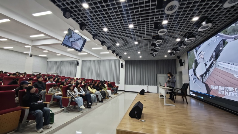 分享会上,研学项目领队刘莹老师首先详细介绍了此次英国研学的整体行程与核心安排。从桑德兰大学沉浸式全英文课堂的深度体验,到纽卡斯尔、杜伦、剑桥、伦敦等多座城市的文化探访,刘老师全方位展现了研学之旅在语言能力提升、多元文化感知、国际学术交流等方面的丰富成果,让在场同学对英国的教育体系、城市风貌与深厚文化底蕴有了更为直观的初步认知。